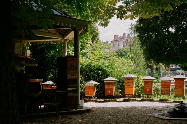At the Luxembourg there is a lovely 19th century apiary in which the bees still swarm and thrive, and so one would expect, for there are flowers every where, dense banks of zinnias, poppies, others whose name I don’t know.