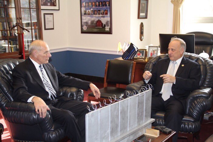 The most absurd idea of all is that it will protect America from drugs. Trump’s tweet of today was about drugs and “poisoning our youth.” Where there is demand and money to be made, a supply will be found. The wall would be effective against young families with children who, fleeing the violent neighborhoods of Salvador and Honduras, managed, with heroic effort, to get that far. They, indeed, would be stopped by the” tall, powerful, and beautiful southern border wall. “ But not drugs. Below is a photo of Congressman Steve King, a rabid anti-Mexican crusader, showing his idea of the wall to the New Homeland Security secretary. I urge you to pick up your phone. Help kill this monstrosity.