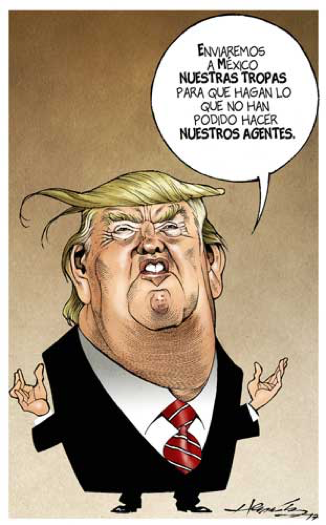 By chance, minutes after reading this, I stumbled on a short article in Le Monde that said that Trump had threatened to invade Mexico! Since French political chaos was the lead story in that 02/02 Le Monde, this was a bit down the page. The story had a quotation of Trump’s words from a Mexican source, which they cited and to which they provided a link. I followed it to a long story in a Mexican journalism site (live links to both these stories is provided below. I speak better Spanish than I do French so translate from the original.)